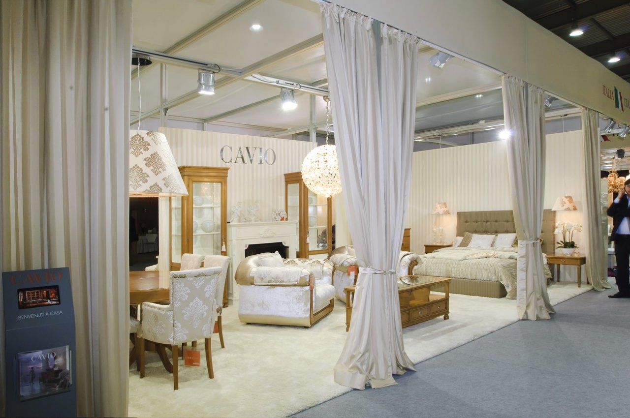 A questo avvenimento importante CAVIO ha presentato un nuovo concetto della casa italiana dove si riflette il calore, l’eleganza e lo stile usando colori caldi. Lo stile della Collezione Fiesole in “bianco patinato”, la Collezione Benedetta in “avorio oro” e la Collezione Como in finitura “miele” sono stati combinati in un’armonia di tessuti, colori ed elementi decorativi.